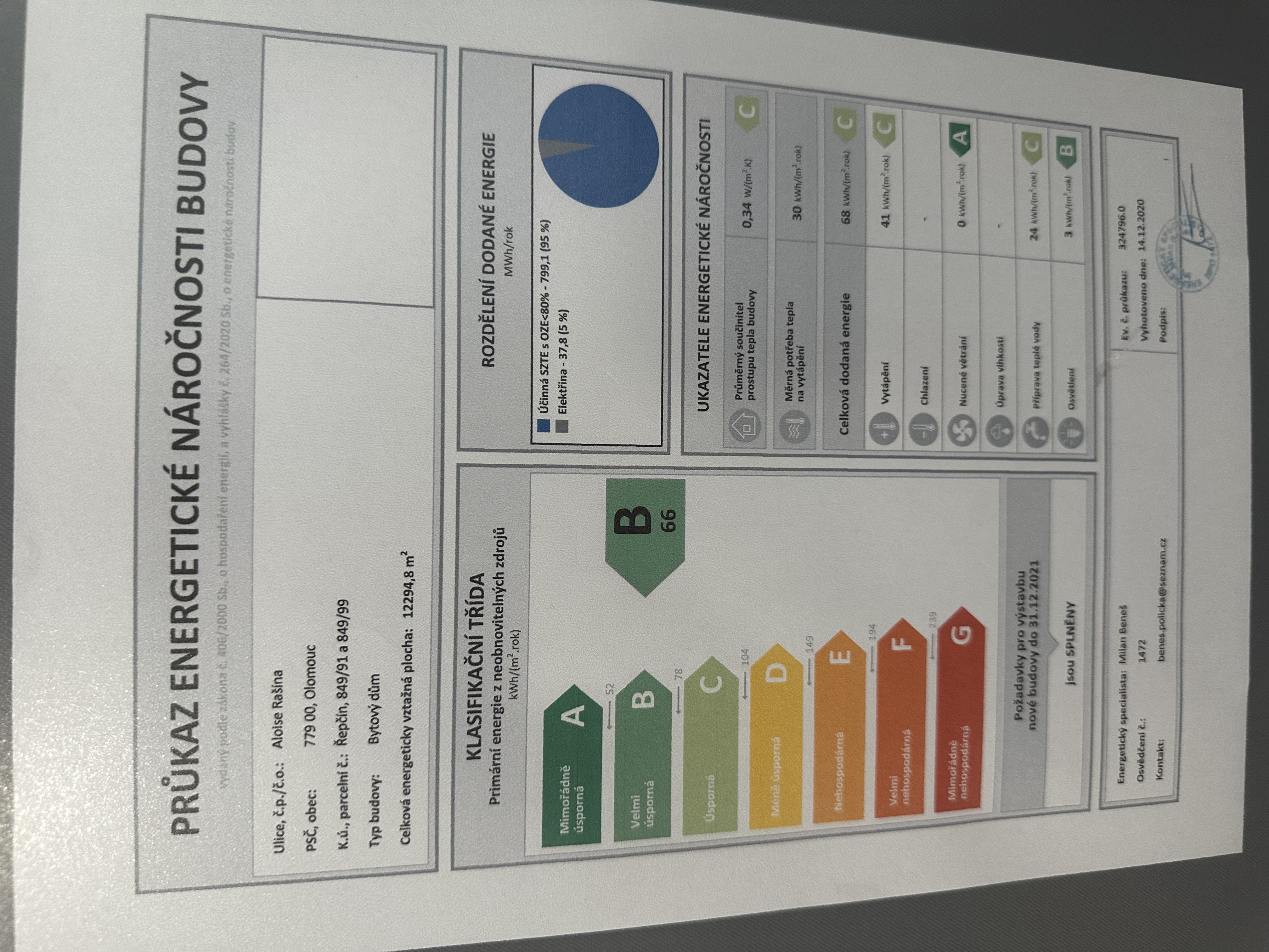 | Ukazatel ENB | 66 kWh/m2 za rok |